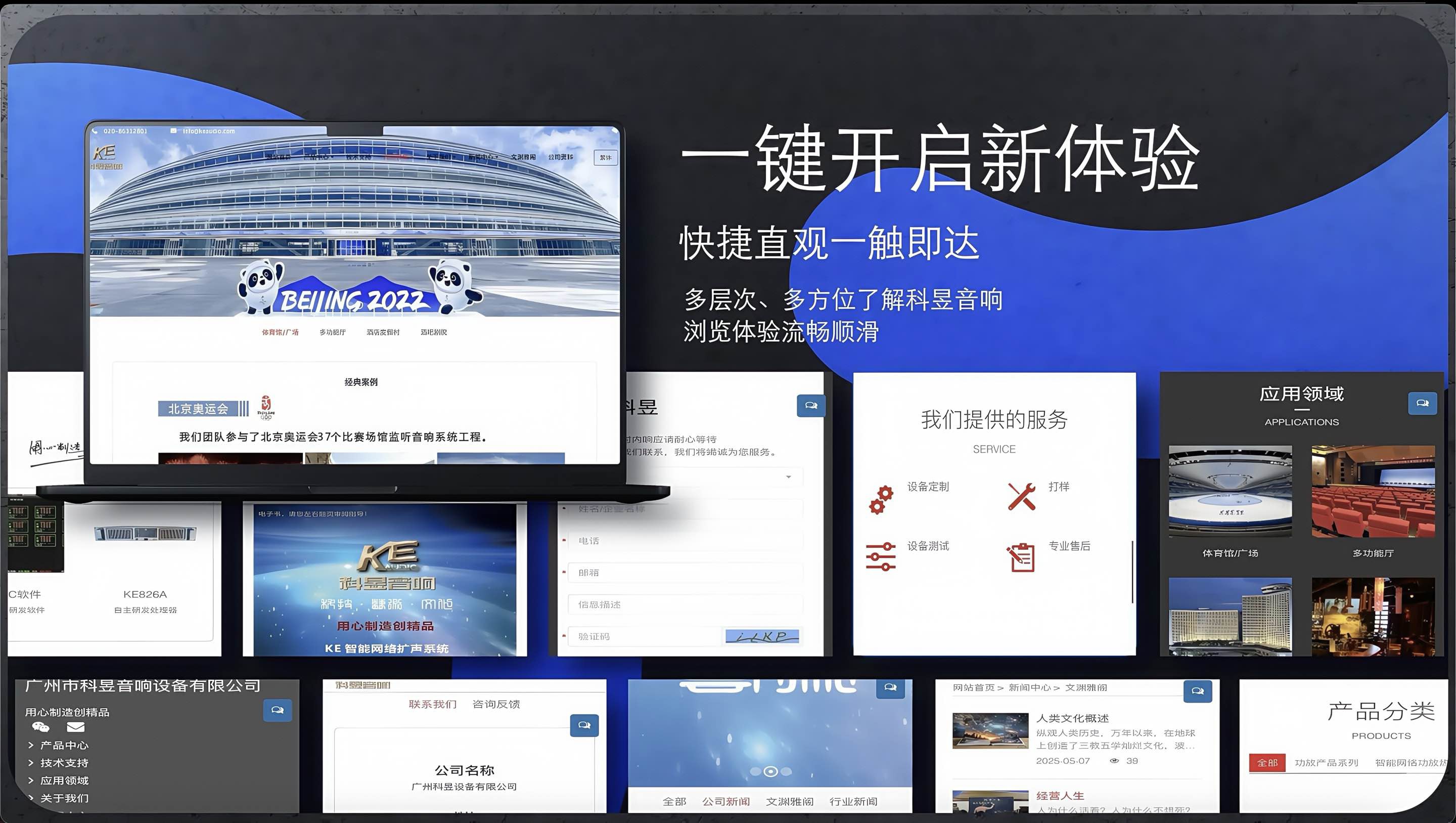為契合公司戰略發展,提升品牌影響力。科昱音響官網www.keaudio.cn全新升級上線啦!從視覺到功能全面升級,旨在為大家帶來更清晰、更高效的瀏覽體驗。從頁面布局到內容分類,從功能設置到信息呈現,我們都做了細致優化,讓您能更快速地找到所需信息,更全面地了解科昱的產品信息、技術成果和最新資訊。